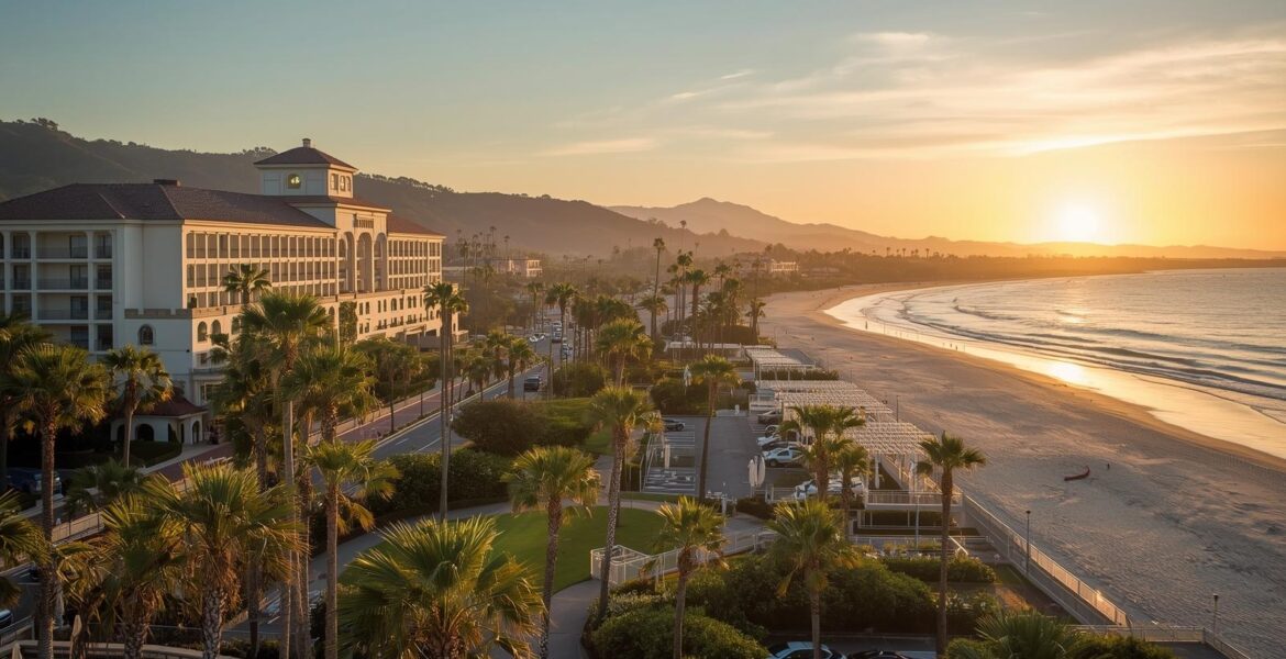 Imagine waking to the gentle sound of Pacific waves, with palm trees framed by your window. At the Hilton Santa Barbara Beachfront Resort, this sprawling property feels less like a hotel and more like its own Spanish-style coastal village where the beach is your front yard.